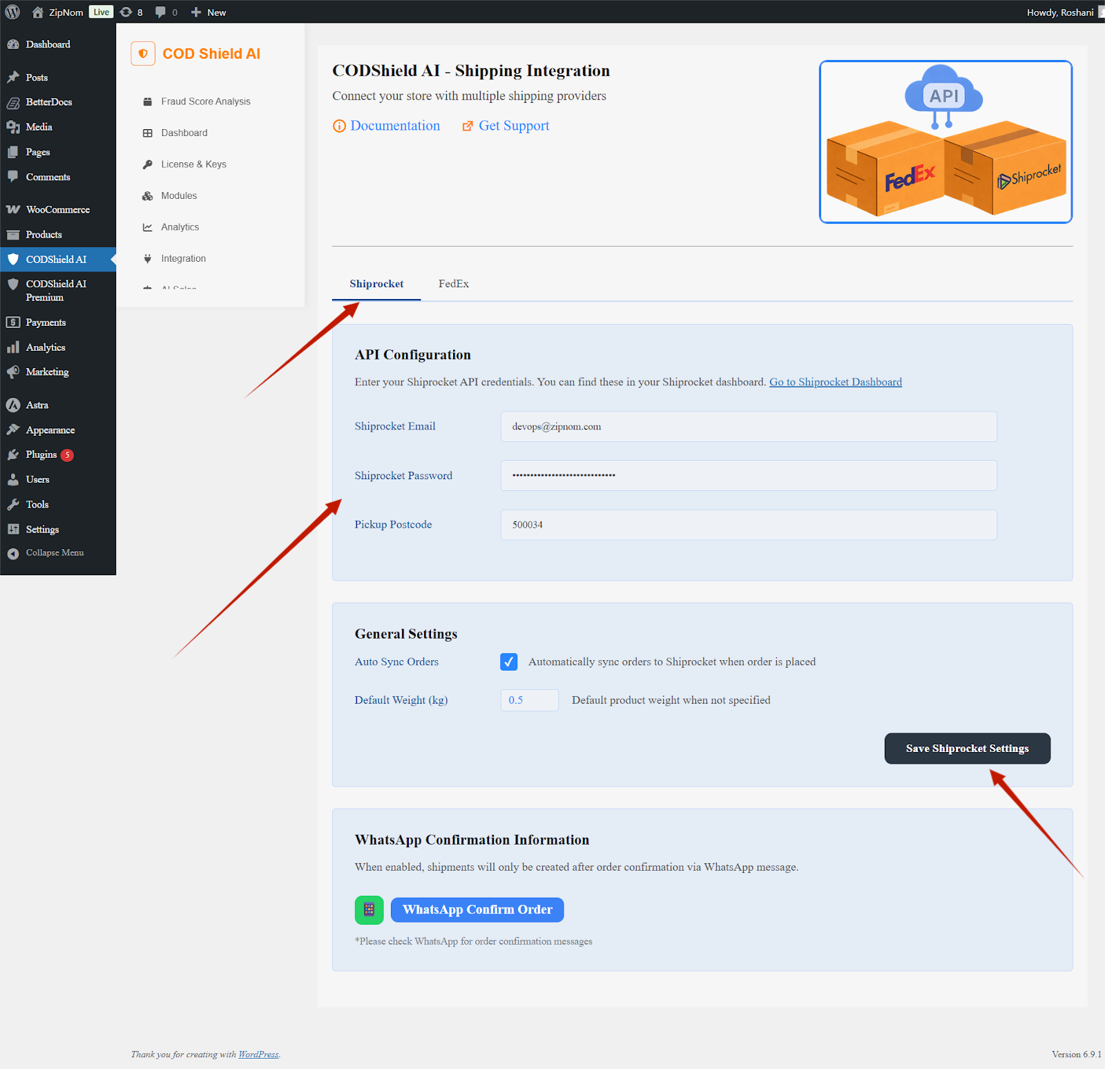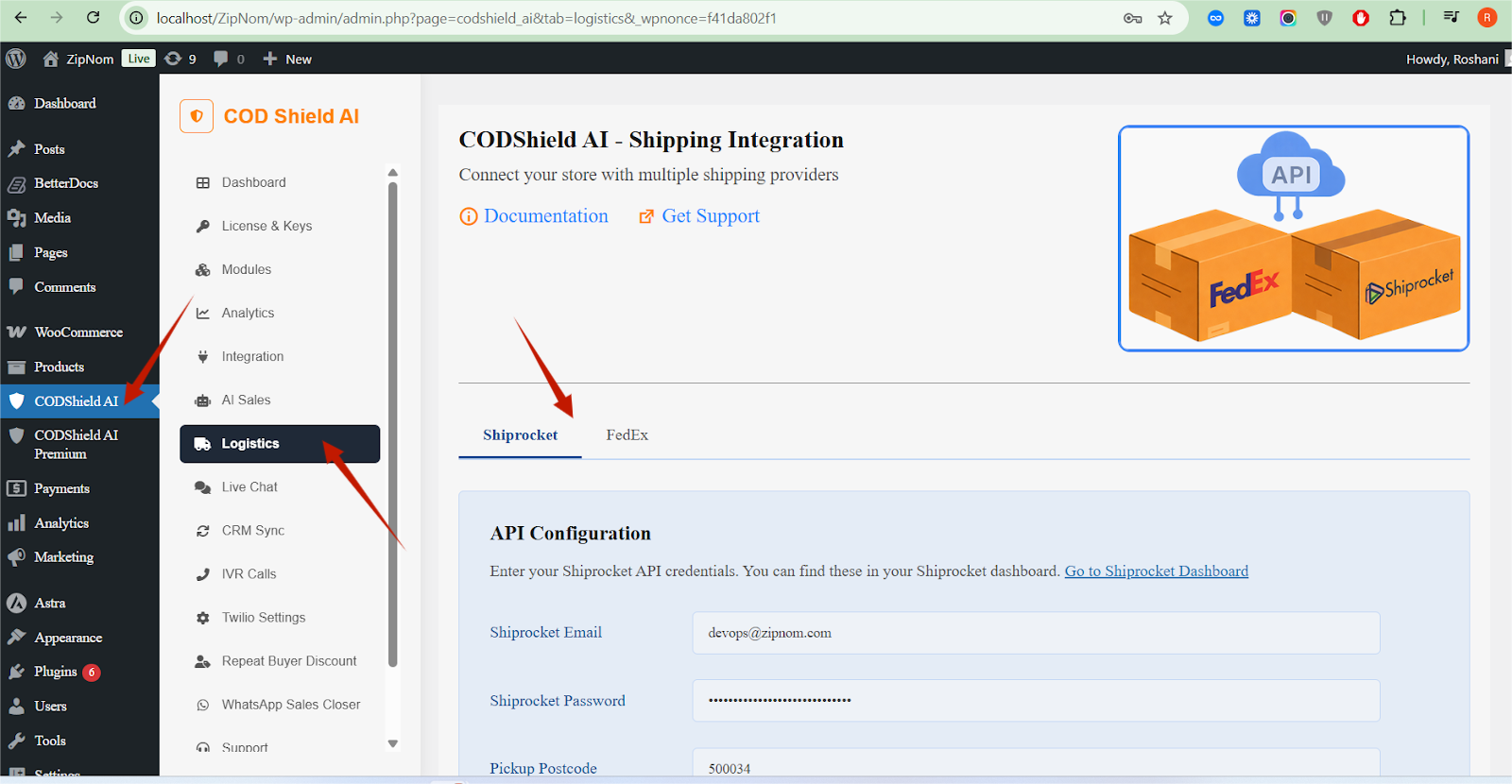- CODShield Shiprocket Logistics (for domestic)