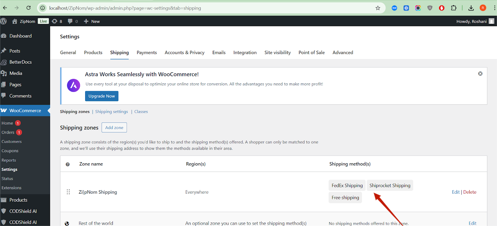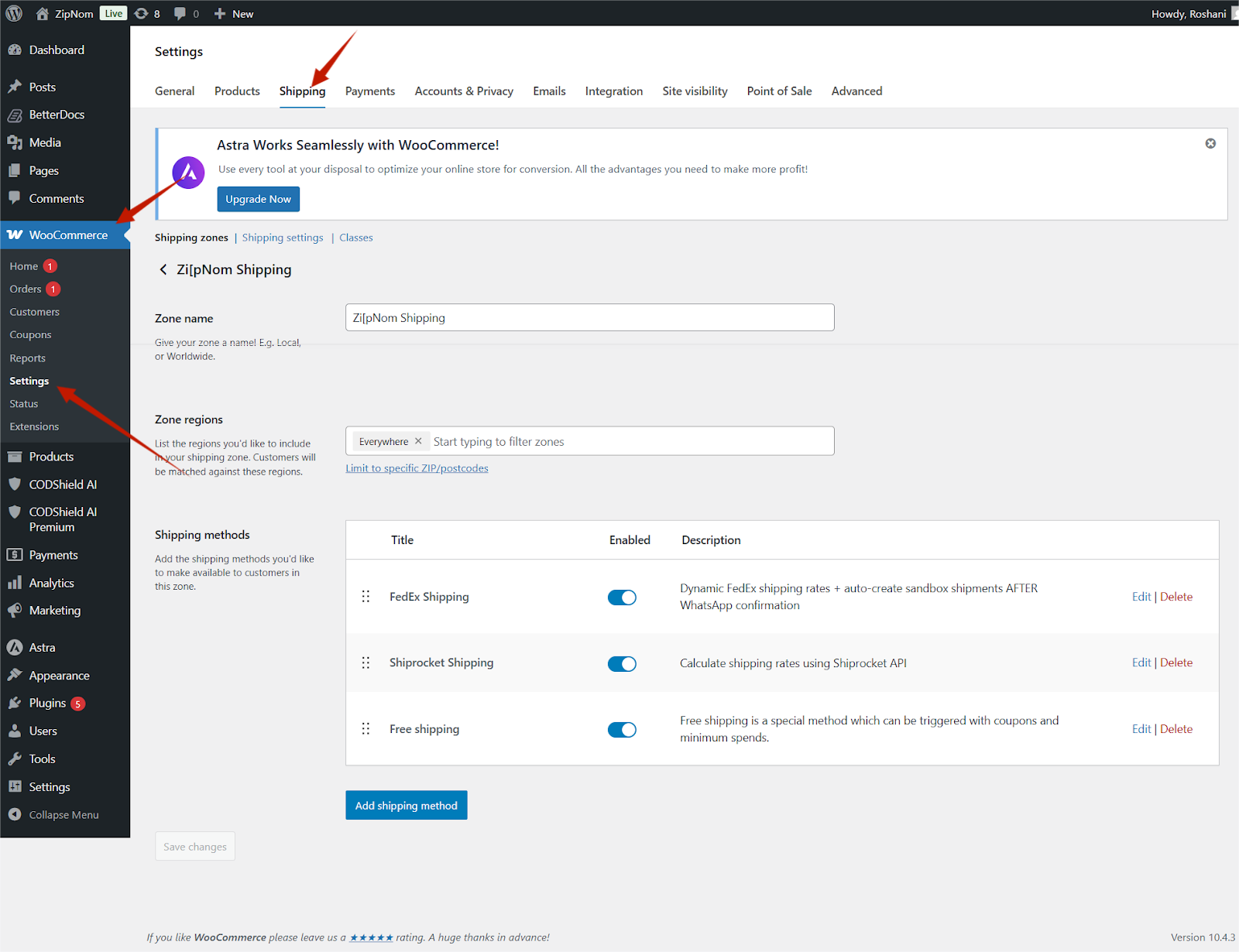 WordPress Admin → WooCommerce → Settings → Shipping
