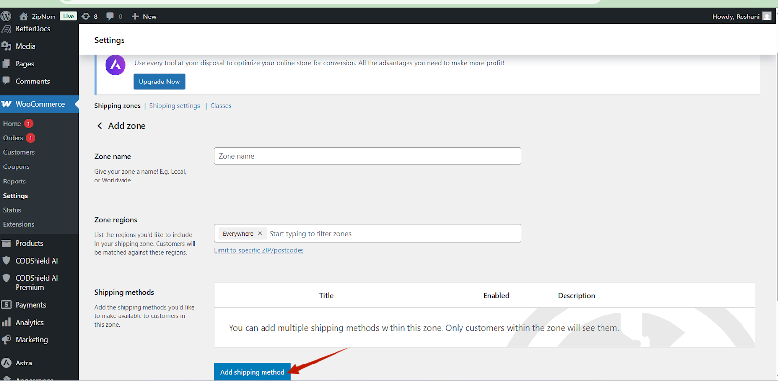 - Click Add Shipping Method