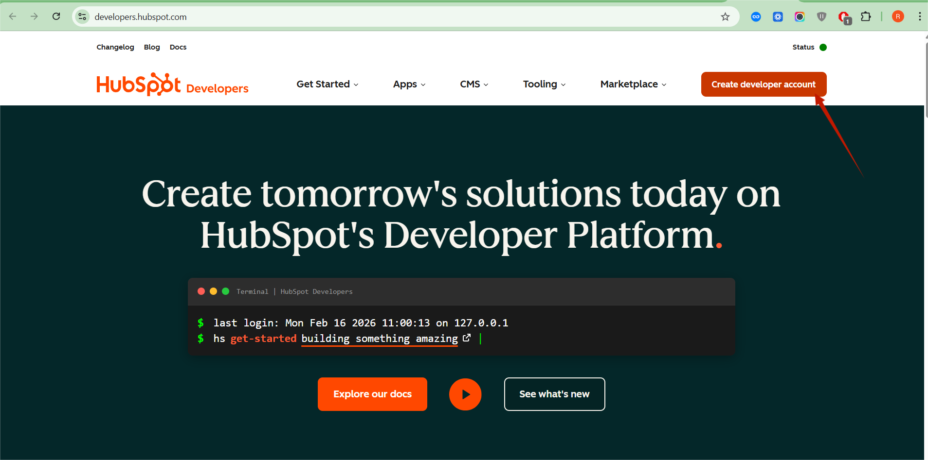 - Go to: https://developers.hubspot.com